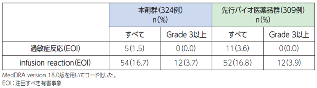 ●過敏症反応関連事象、infusion reaction関連事象の副作用発現率(海外データ)【図表】[1]