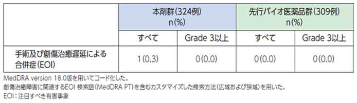 ただし、創傷治癒遅延による合併症があらわれるおそれがあります。臨床試験において大きな手術後28日間経過していない患者さんに本剤を投与した経験はありません[1]。