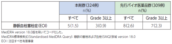●具体的な事象名:深部静脈血栓症、肺塞栓症 等[1]